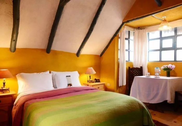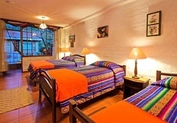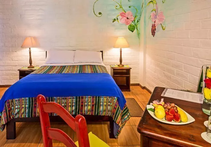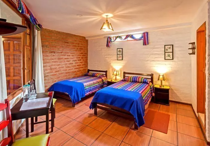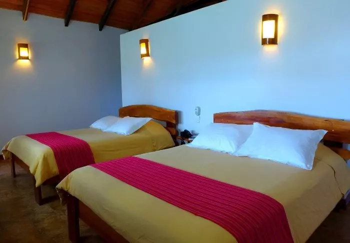 Haciendan är byggd i traditionell stil med lokala material och alla 22 rum är unikt inredda. Alla rum har uppvärmning för de kyliga nätterna och ett eget badrum med varmvatten. Det finns även wifi.