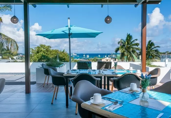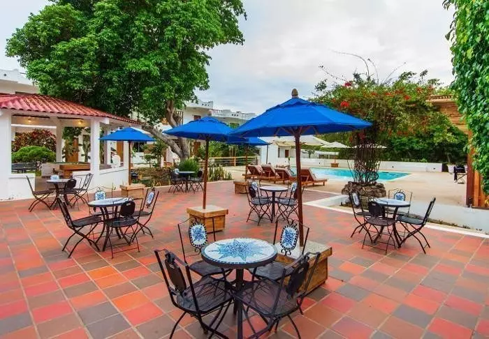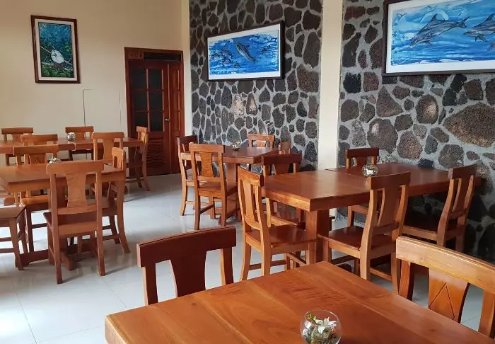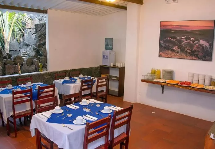 I hotellets restaurang serveras den inkluderade frukostbuffén. Det sköna klimatet på ön gör att du kan välja att sitta både inne och ute. Restaurangen serverar också lunch och middag, och du kan beställa läckra, ecuadorianska rätter.