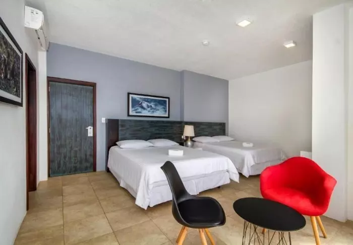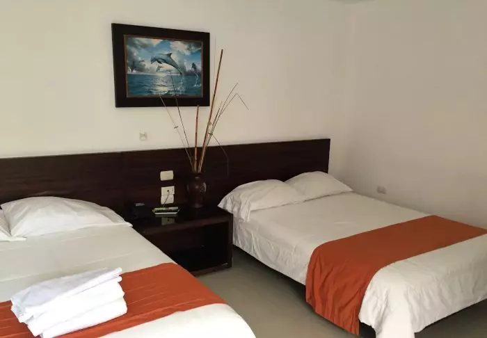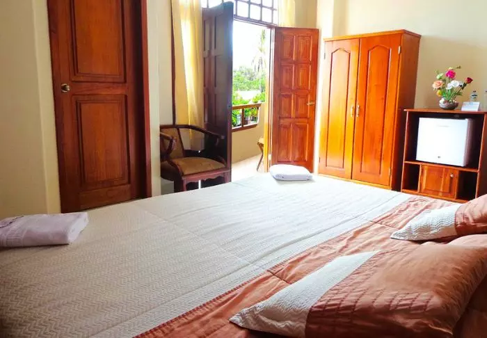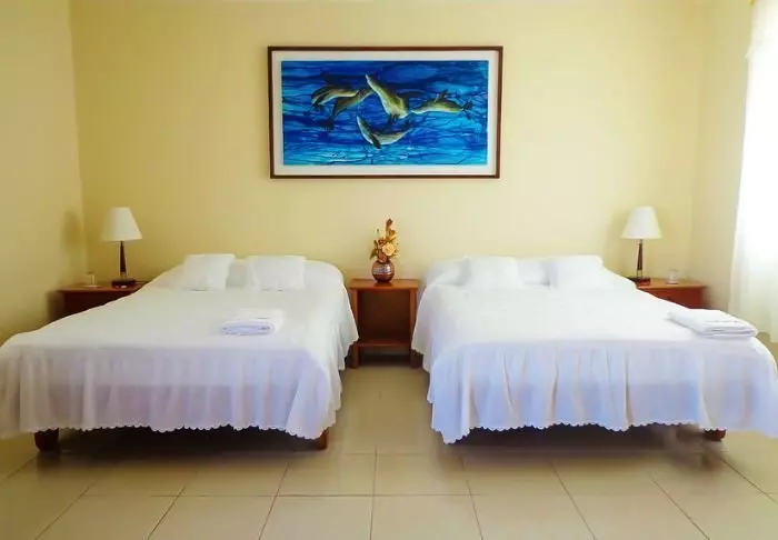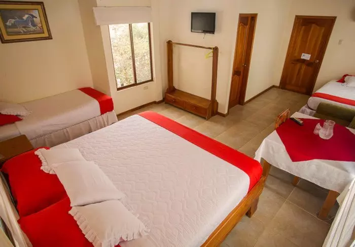 Här finns endast 16 rum (4 standardrum och 12 standardrum med utsikt). Rummen är enkelt inredda, men rena och fina med färgglada bilder på väggarna av naturen och djurlivet på Galápagosöarna. Alla rum har eget badrum, aircondition, wifi och kabel-tv.
