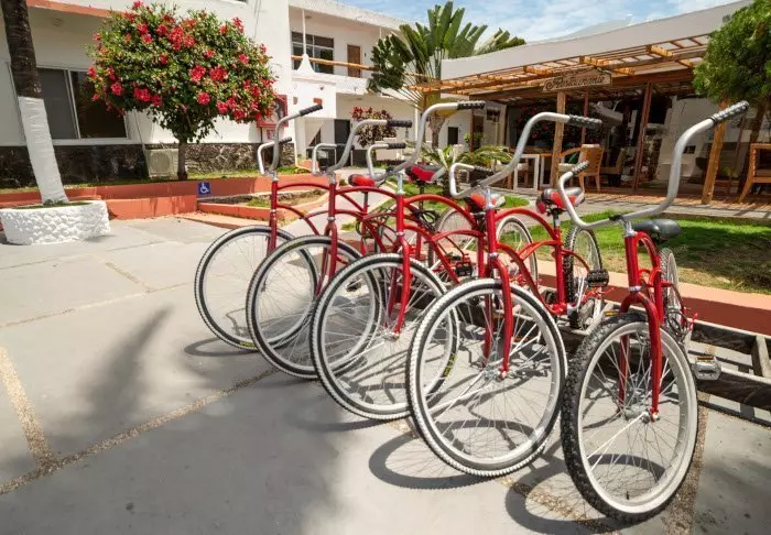Om du ska besöka Tortuga Bay under din vistelse på Puerto Ayora finns början på stigen endast 5 minuters promenad från hotellet. Hotellet har även cyklar för utlåning som du kan använda för att ta dig runt i staden med.