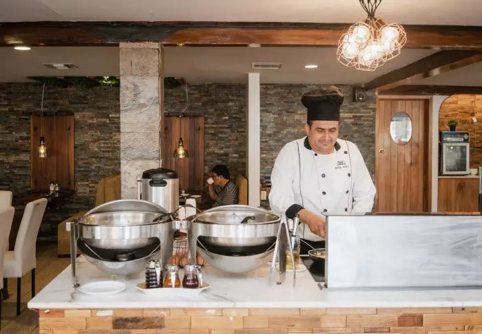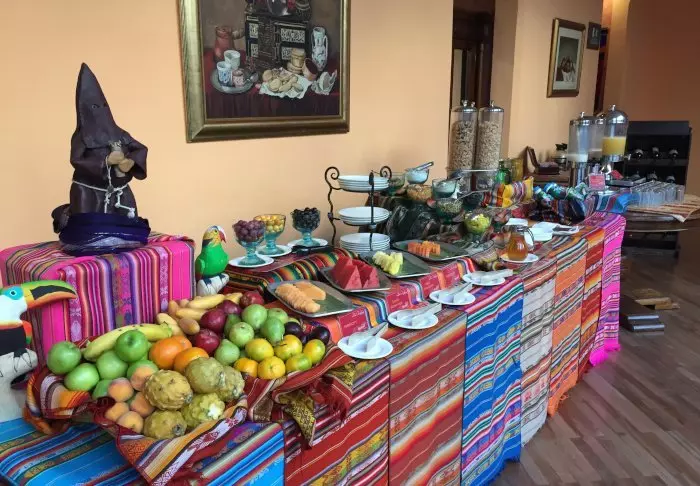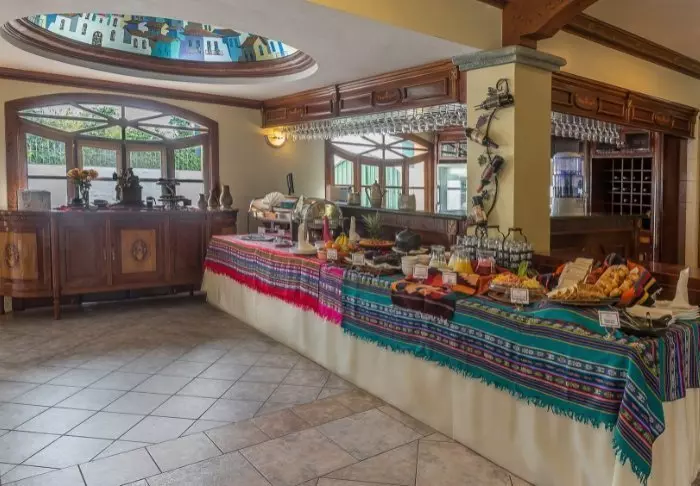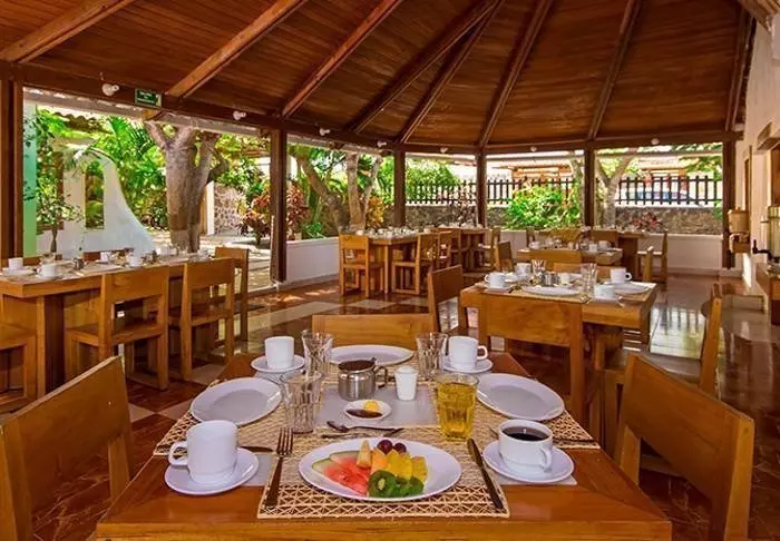 Hotellets restaurang skämmer bort dig med en överdådig frukostbuffé, självklart med allt du känner till men även med spännande ecuadorianska frukter och specialiteter. Det finns också möjlighet att beställa lunch och middag à la carte i restaurangen.
