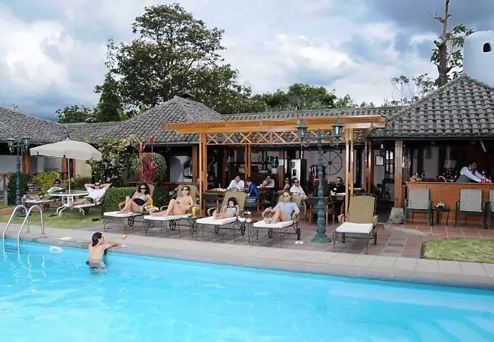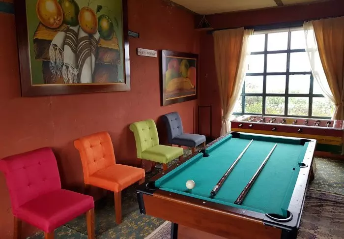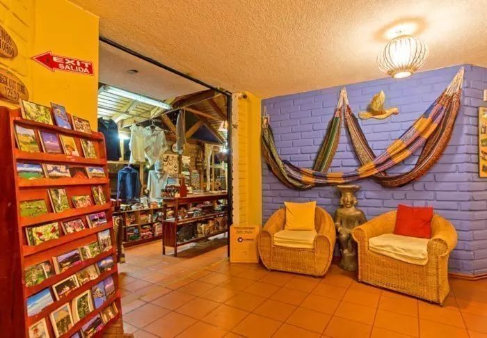 Det finns flera platser där du kan koppla av med en kopp kaffe eller spela schack. Hotellet har även sin egen butik som säljer färgglada souvenirer från Ecuador.