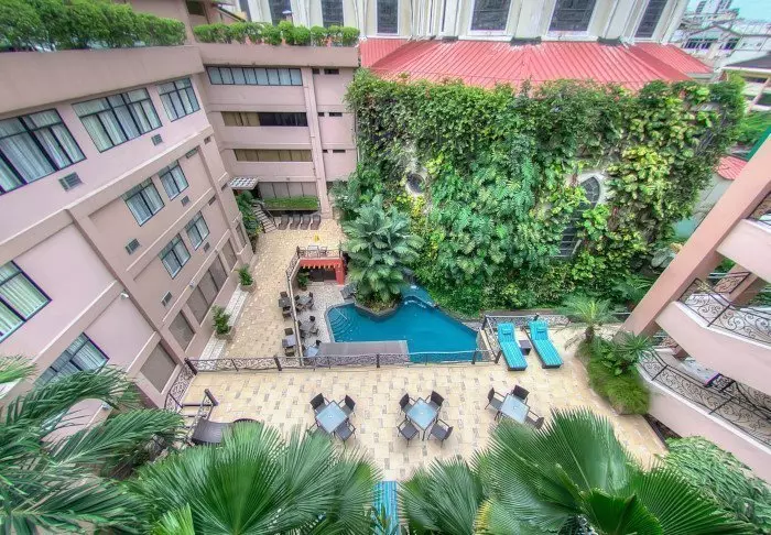 På hotellets innergård finns en liten pool, där du kan ta dig ett uppfriskande dopp och slappna av på en solstol. Här hittar du även hotellbaren, där du kan köpa kalla drycker och enklare måltider.