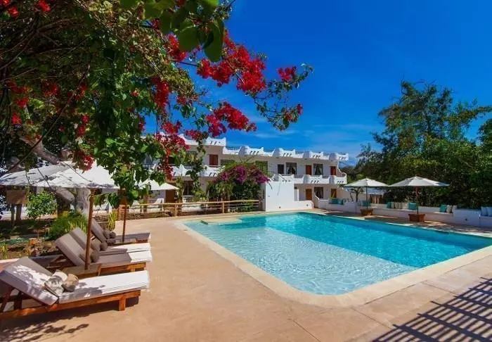 Hotellet har fyra våningar (ingen hiss) och enbart 19 rum, utplacerade kring en trädgård med en liten saltvattenspool där du kan ta dig ett dopp efter en dag med stora upplevelser på ön.