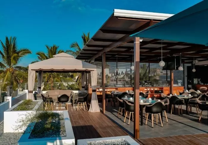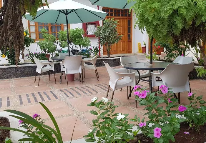 Hotellets restaurang, La Terraza, ligger på hotellets takvåning och har en vacker utsikt över den trivsamma trädgården och den omgivande naturen. Här njuter du av din inkluderade frukost i den friska morgonbrisen. På utvalda dagar kan du även äta middag häruppe.
