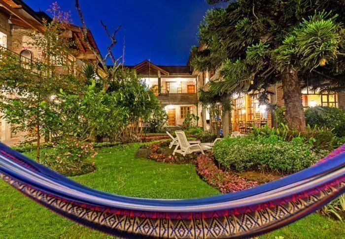 Efter en spännande dag i Quito kan du koppla av i hotellets lilla loungeområde eller på utomhusterrassen där du kan se solen gå ner bakom bergen.