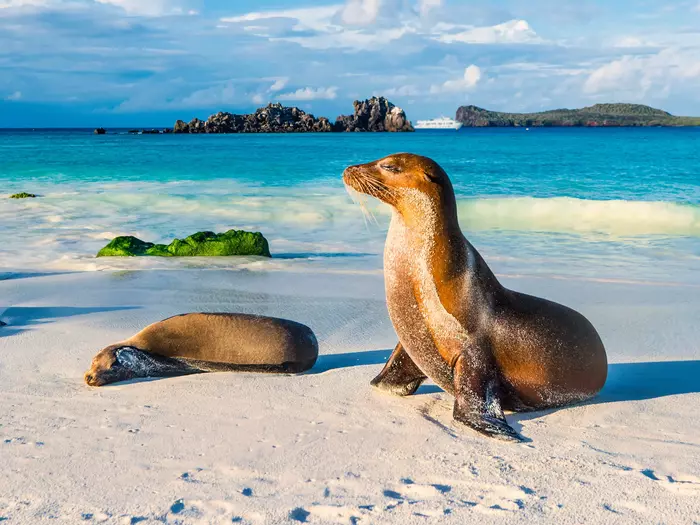 Det finns också många havsleguaner och sjölejon på ön, som är en av få platser i Galápagos där du kan möta galápagospälssälen.