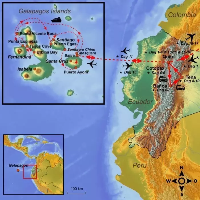 Från Ecuadors fastland flyger du till Galápagosöarna, där din resa avslutas med en upplevelse utan motstycke: en äventyrlig 5-dagars kryssning. Att vara på kryssning i Galápagos är en unik upplevelse, då du besöker obebodda öar och kommer riktigt nära det fascinerande djurlivet.