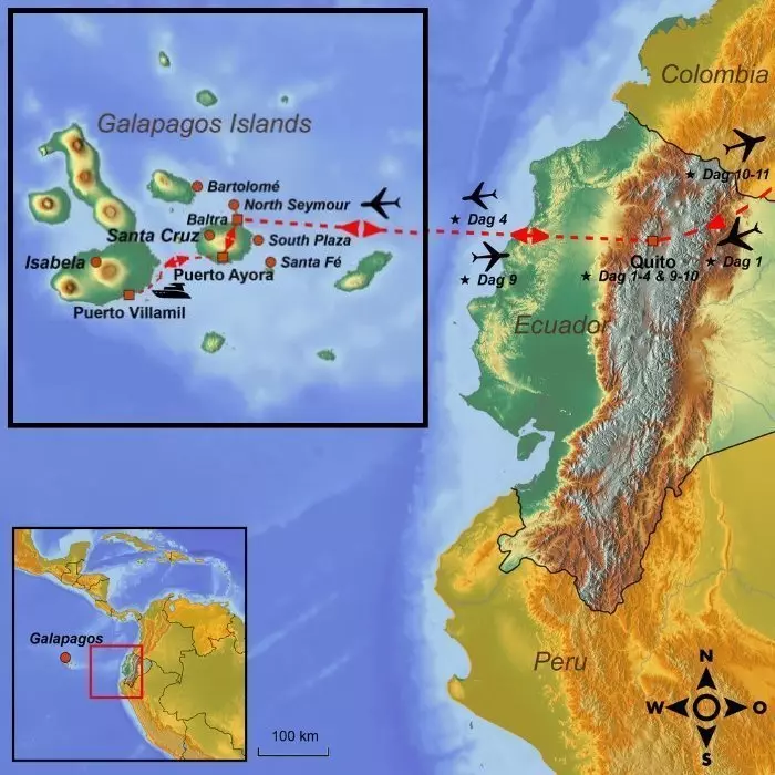 I dag börjar den andra delen av din resa, som går till de fascinerande Galápagosöarna cirka 1 000 kilometer från fastlandet. Du hämtas på hotellet och körs till flygplatsen. Innan du checkar in ska du betala för ett så kallat Transit Control Card (kontant). Flygresan till Galápagos tar cirka 2,5 timmar.