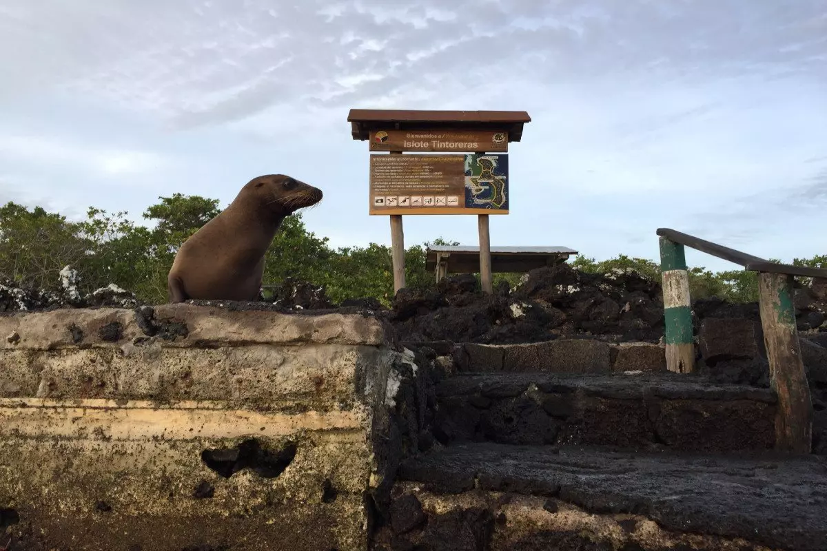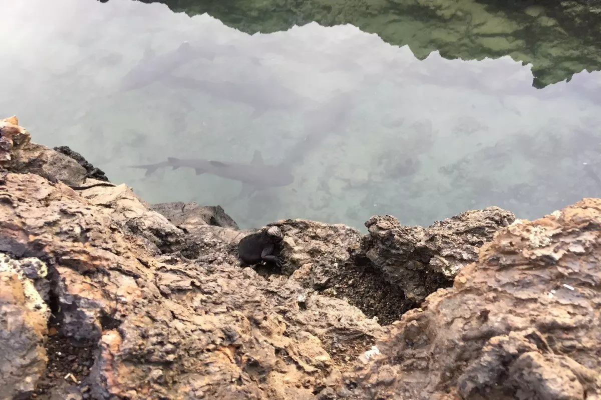 Du kan också promenera till piren i Puerto Ayora och se de många revhajarna, rockorna och sjölejonen som håller till i det låga vattnet, samt de färgrika krabborna och havsleguanerna som håller till på klipporna.