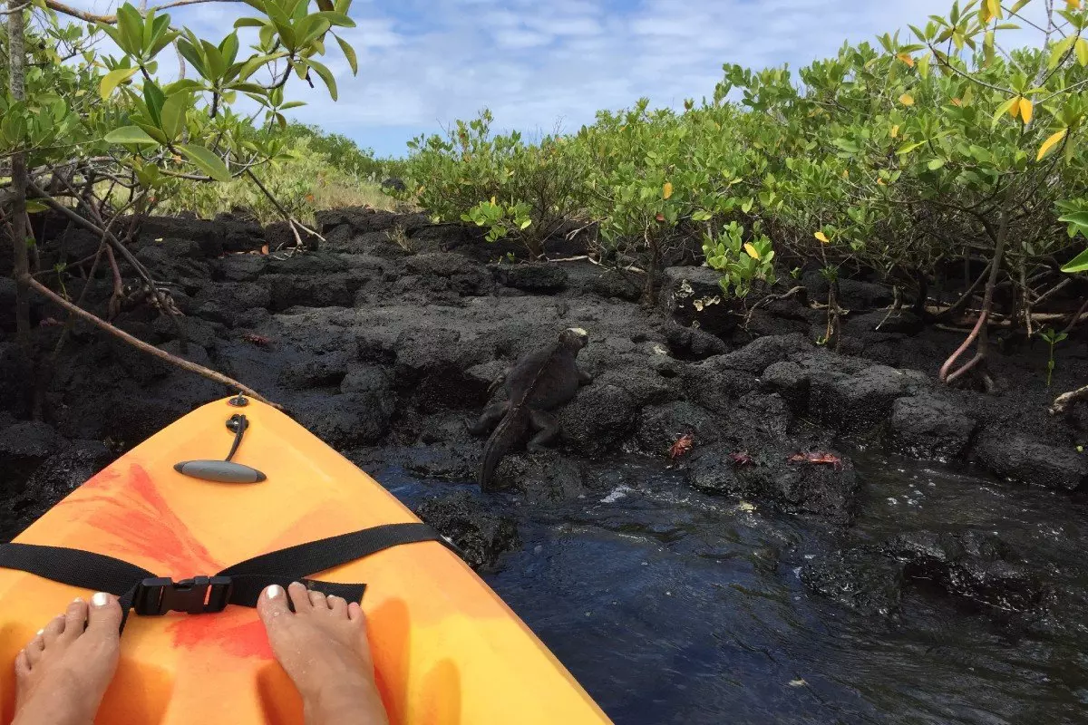 Här kan du hyra en kajak och paddla på upptäcktsfärd i den lugna lagunen. Du kan bland annat se havsleguaner och sköldpaddor som kommer upp till ytan för att dra in ny luft i lungorna innan de återigen dyker på jakt efter föda.