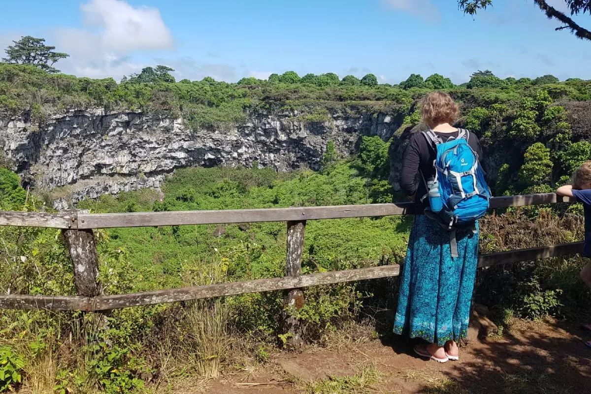 Första stoppet är vid Los Gemelos (”tvillingkratrarna”), vilket är två enorma slukhål som ligger bredvid varandra. Runt hålen kan du uppleva ett rikt fågelliv i den frodiga skogen av korgblommiga växter (Scalesia).