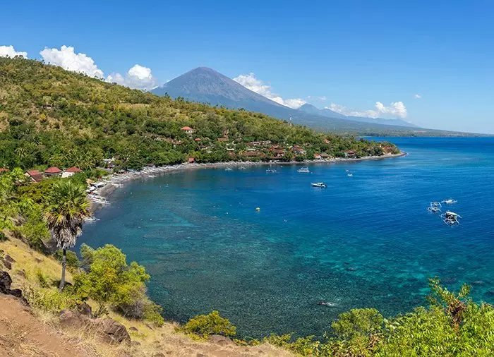 Du hämtas på hotellet och körs till den lilla bukten Jemeluk Bay, där Gunung Agung tronar i bakgrunden. Jemeluk är en av de absolut bästa snorklingsplatserna i området med lugnt vatten tack vare buktens halvmåneform.