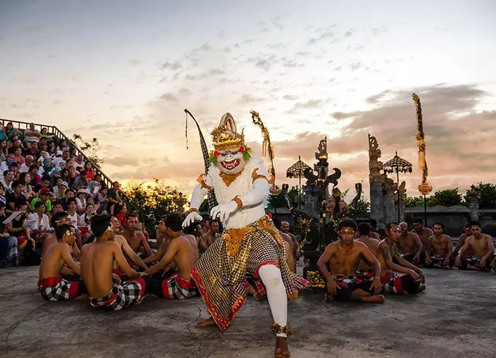 I skymningen och solnedgången uppförs den traditionella balinesiska kecak-dansen av en mängd manliga dansare. Den berömda balinesiska dansen skildrar den gamla historien om kung Rahwana, som tillfångatar Ramas fru Sita. Dansen visar kampen mellan Rahwana och apornas ledare Hanoman.