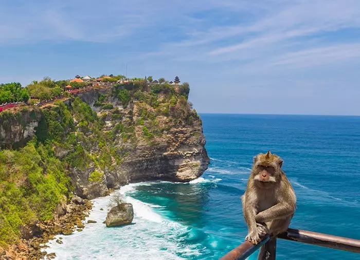På eftermiddagen blir du hämtad på ditt hotell och körd till ett av Balis mest berömda tempel, Pura Luhur Uluwatu, som ligger på en klippavsats 76 meter över havet med en fantastisk utsikt över Indiska oceanen. Känn fjärilarna i magen när du står på toppen längs muren och ser ner i det brusande havet, som med yrande skum och stora vågstänk slår mot klippan. Arkeologiska fynd daterar templet till 900-talet och det är samtidigt en av de vackraste platserna på Bali att njuta av solnedgången. I träden vid tempelingången håller leksugna apor till. De sägs skydda templet mot det dåliga och det onda.