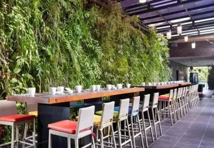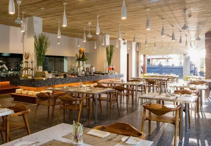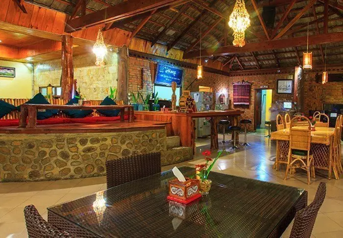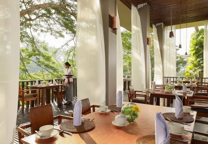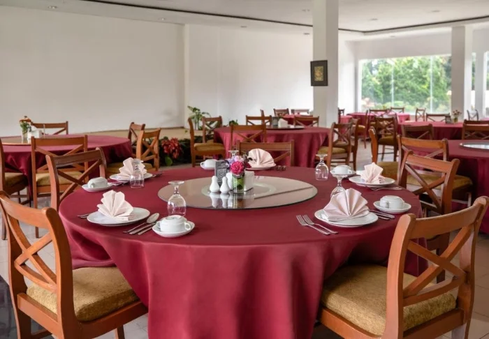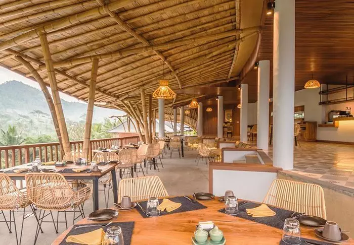 Hotellets restaurang serverar en varierad meny med både lokala och internationella rätter som tillagas med färska ingredienser från närområdet. Här kan du njuta av dina måltider med utsikt över de frodiga plantagen i området.
