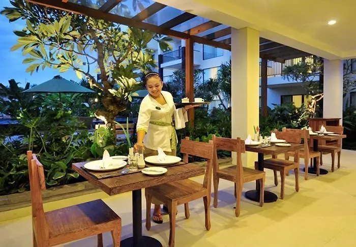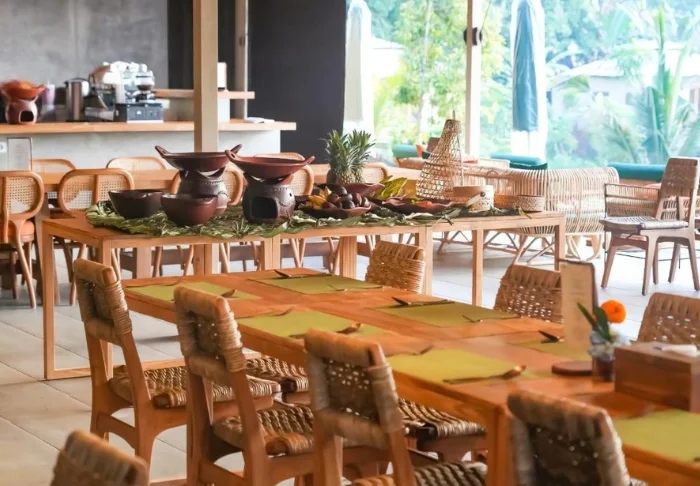 Hotellet har också en härlig liten restaurang där du kan njuta av balinesisk mat och internationella favoriter – antingen inomhus eller i det fria under öppen himmel.