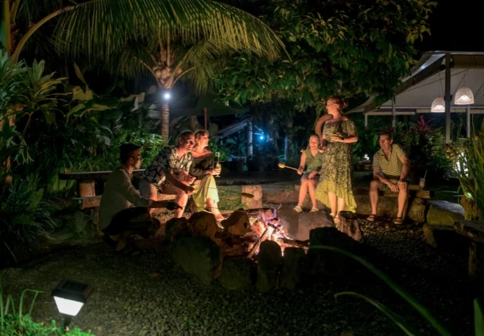 Kvällarna bjuder ofta på en avslappnad stämning vid den öppna eldplatsen med en uppfriskande cocktail, medan cikadorna och den glödande elden sätter tonen för resten av kvällen.