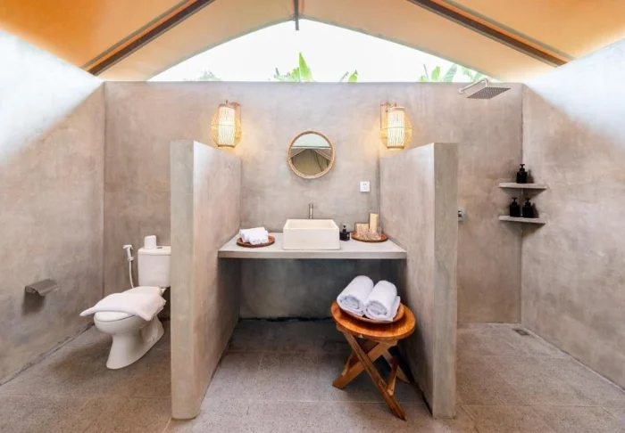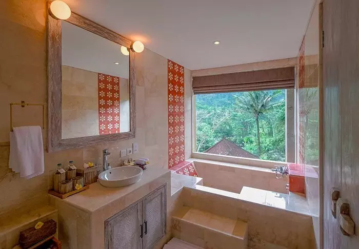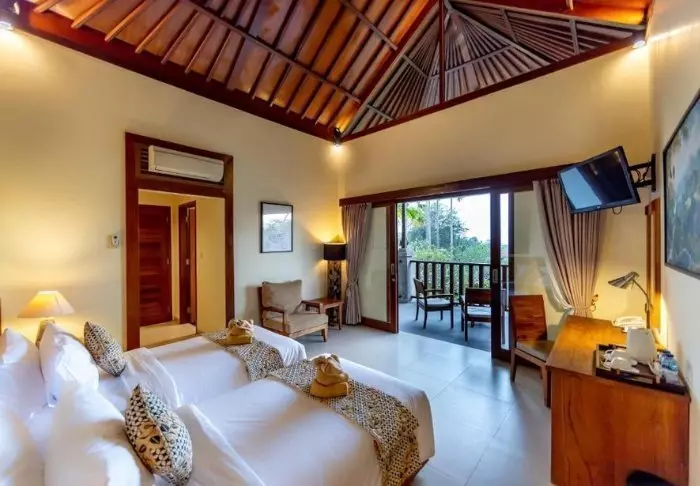 Rummen är 50 kvadratmeter stora och läckert inredda i modern balinesisk stil, som passar perfekt in i de natursköna omgivningarna. Alla rum har wifi, aircondition, takfläkt, te- och kaffefaciliteter, minibar, gratis vatten på flaska, värdeskåp, tv och telefon. Badrummet är utrustat med badrock och badtofflor, hårtork och toalettartiklar. Efter en förhoppningsvis god natts sömn kan du sätta dig ute på din privata terrass med utsikt över de gröna omgivningarna och njuta av en kopp te eller kaffe till djungelns många ljud.