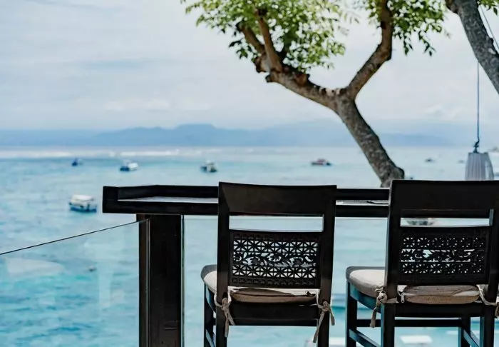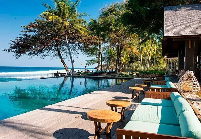 Efter en härlig dag kan du avrunda kvällen med en uppfriskande drink i baren medan solen långsamt går ner över Lombok-sundet.