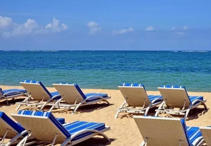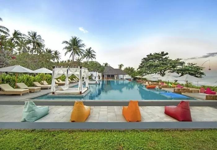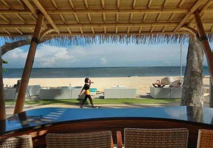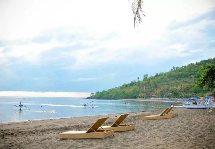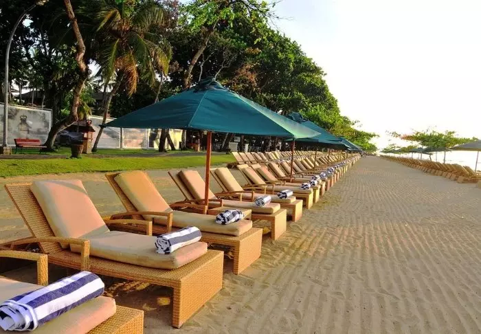 På stranden kan du fritt använda både solstolar och parasoller, så du kan ligga och slappna av och njuta av den indonesiska värmen.