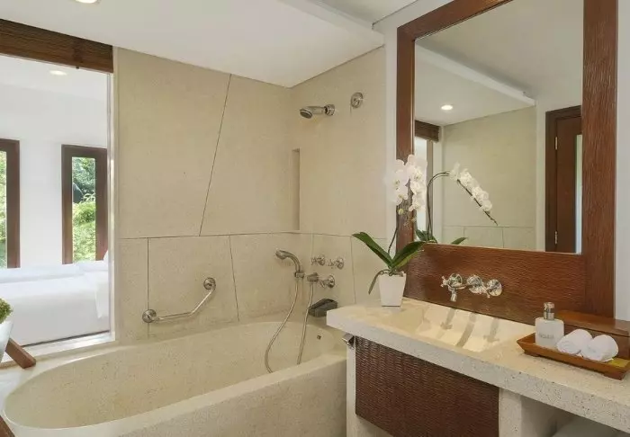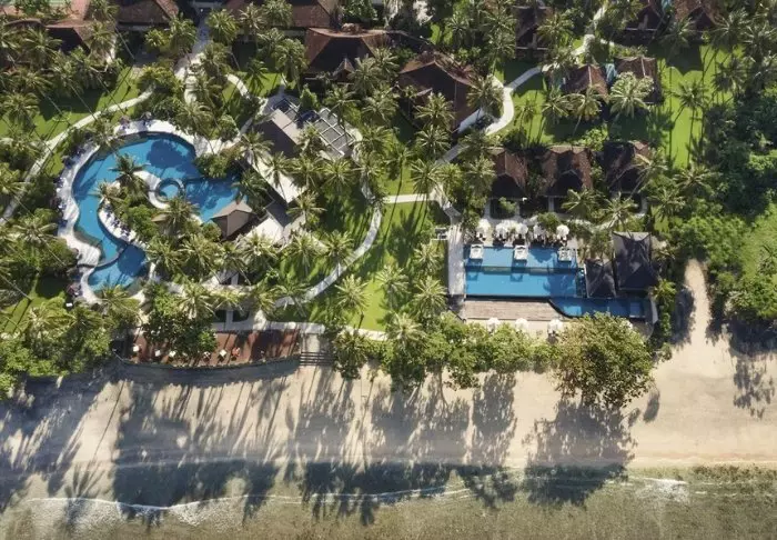 Resorten utmärker sig med sin eleganta och harmoniska stil, som vackert kompletterar de natursköna omgivningarna. Platsen, som är omgiven av frodiga, tropiska trädgårdar, skapar en lugnande atmosfär med ljudet av svallande vågor och fågelsång, vilket bidrar till en charmig och avkopplande miljö.