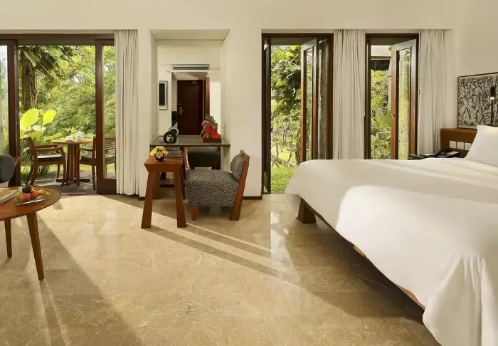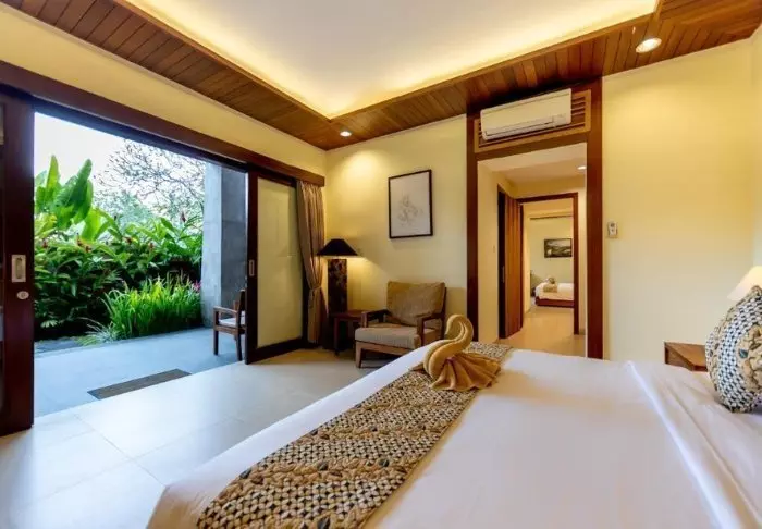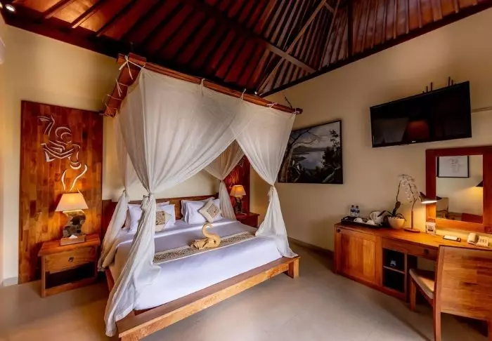 Anumana Village Ubud bjuder på moderna inkvartering i vacker balinesisk stil. De rymliga (46 kvadratmeter) rummen har egen balkong eller terrass, varifrån du kan njuta av den frodiga trädgården. Rummen har allt från gratis wifi och aircondition till minibar och te-/kaffefaciliteter. Badrummen är utrustade med gratis toalettartiklar och hårtork. Dessutom erbjuds du gratis vatten på flaska varje dag.