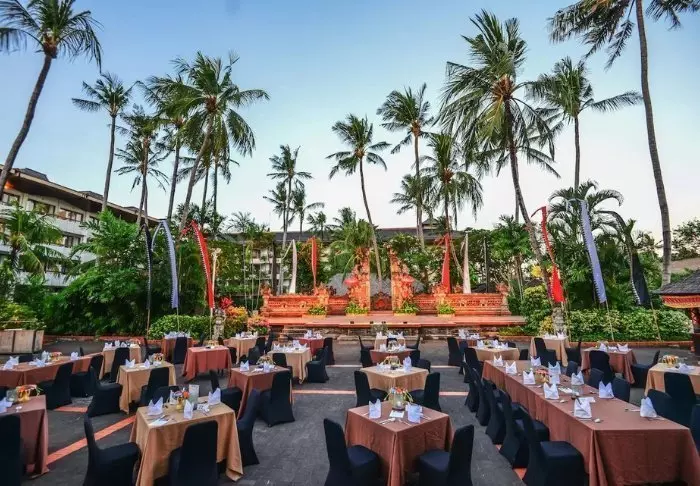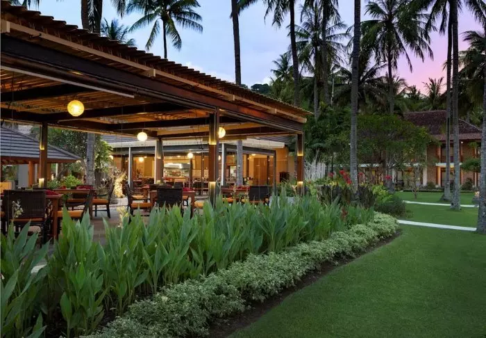 Du kan också se fram emot minnesvärda gourmetupplevelser på hotellets olika restauranger. Starta dagen på Tirta Restaurant med en härlig frukostbuffé, njut av autentiska indonesiska rätter på Lada Restaurant eller smaka på italienska favoriträtter på Basilico Italian Pavilion. Bamboo Bar & Lounge erbjuder en avslappnad atmosfär och iögonfallande inredning. Detta är den perfekta platsen om du vill koppla av under eftermiddagen med en cocktail till ljudet av havets vågor, och vid solnedgången kan du njuta av snacks och läckra pizzor tillsammans med levande musik.