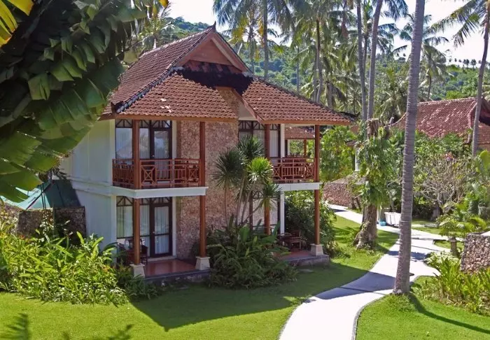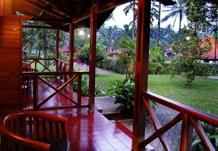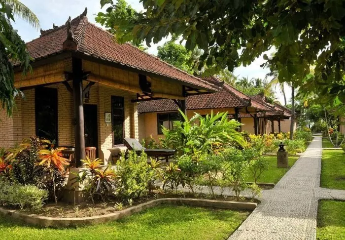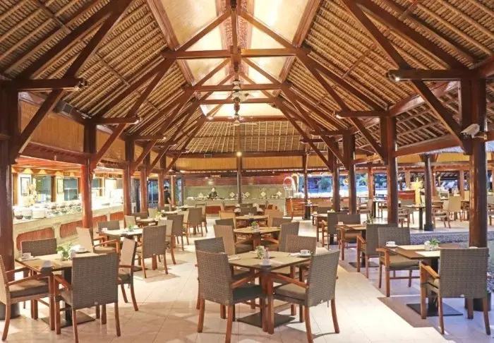 Hotellet är trevligt och har en härligt avslappnad atmosfär. Det är byggt i äkta indonesisk stil med traditionella lumbungstugor och bungalower.