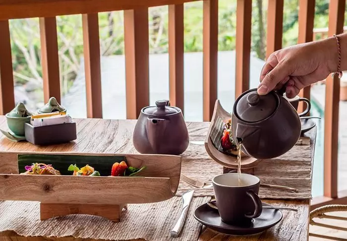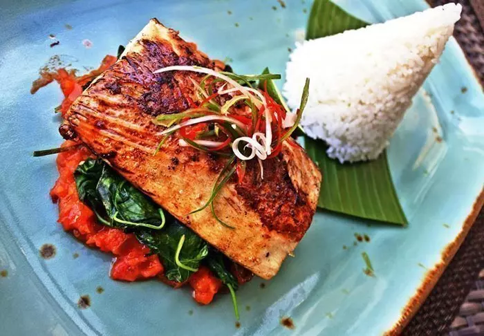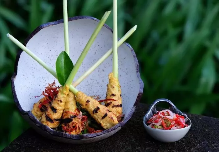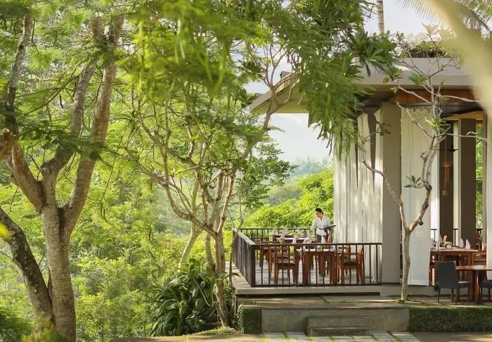 Restaurangen Pratiwi arbetar enligt principen från jord till bord och hämtar råvarorna direkt från egna odlingar och omgivande gårdar. Menyn följer säsongen och bjuder på balinesiska smaker, hemmagjorda kryddpastor och färska örter.