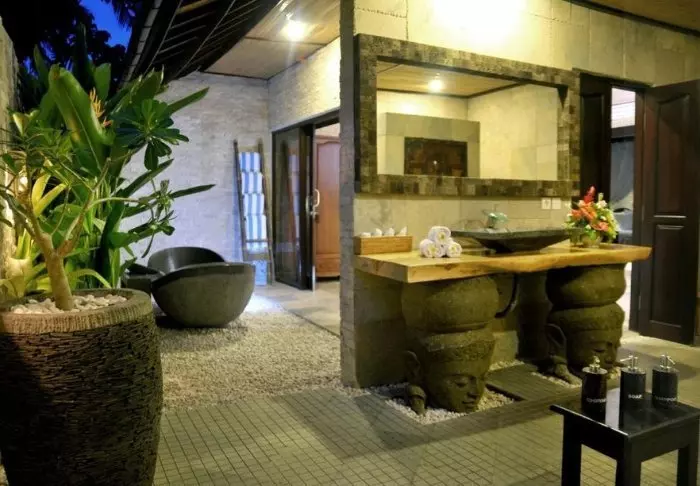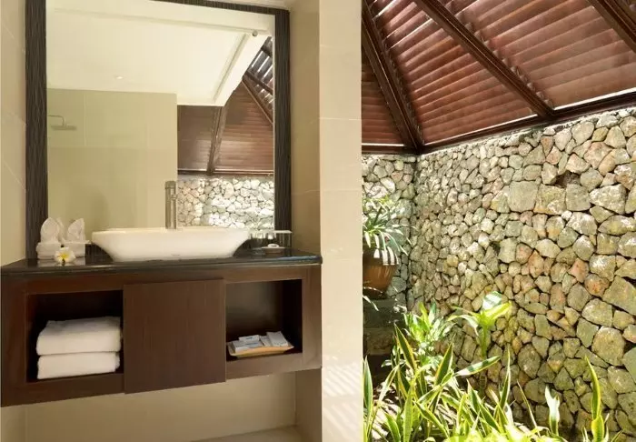Batu Karang är uppfört i rustika material, som harmonierar fint med de tropiska omgivningarna. Stilen är modern och traditionell, vilket även går igen i resortens 37 inbjudande villor och sviter som är inredda med ljusa väggar, eleganta stengolv och fina, mörka trämöbler, som bidrar till en varm och trivsam atmosfär.
