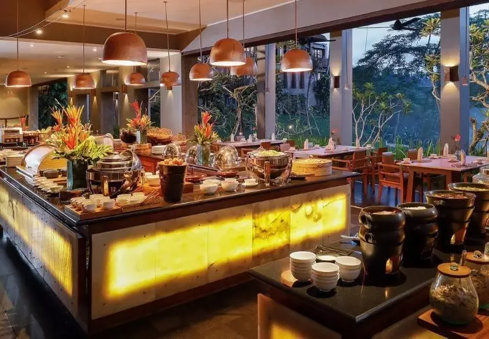 När hungern gör sig påmind bjuder resorten på flera utmärkta alternativ. Huvudrestaurangen Pandawa Restaurant serverar en varierad frukostbuffé med både internationella rätter, nybakat bröd och en omelettstation. Till lunch och middag erbjuder menyn allt från fräscha sallader till saftiga sirloinstekar och dagsfärska skaldjur.