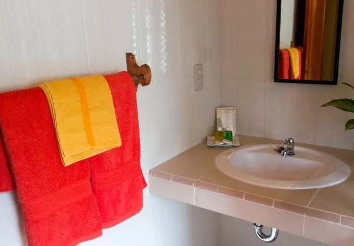 Rummen är enkla men fint inredda och alla har eget badrum och egen toalett. Det finns restaurang på hotellet.