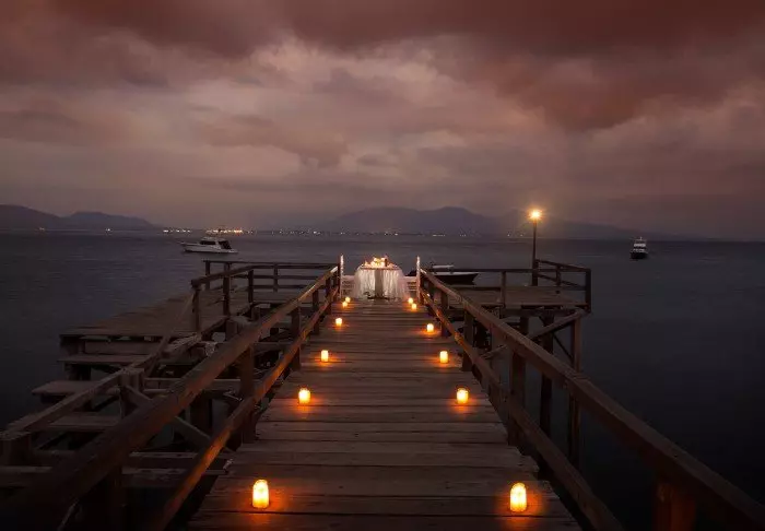 Restaurangen ligger precis bredvid stranden och man kan (mot en extra kostnad) boka en privat, romantisk middag på deras balkong eller varför inte på en avsides plats på stranden.