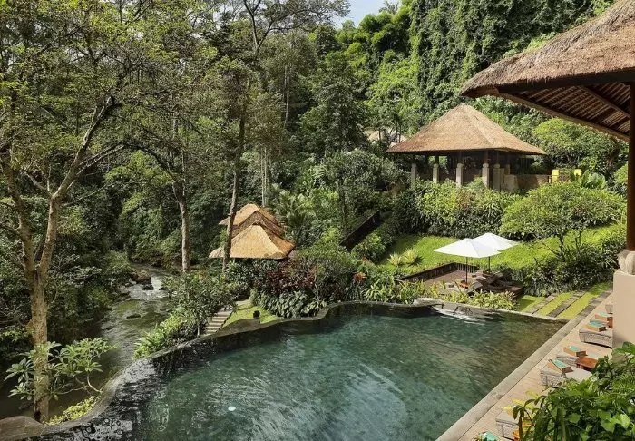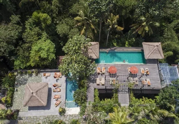 Adiwana Resort Jembawan döljer sig i Ubuds täta djungel omgiven av floder, höga tropiska träd och palmer. Även om civilisationen känns långt borta så ligger huvudgatan, Ubuds marknad och kungliga palats på gångavstånd.