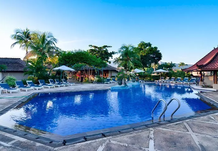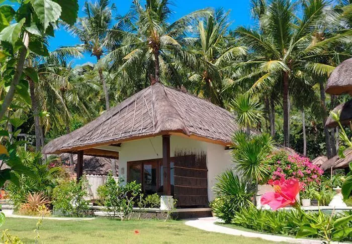 Resorten omges av en stor tropisk trädgård och är byggd i traditionell sasak-stil. Alla 35 rum är inredda med vackra, naturliga material från golv till tak och dekorerade med vackra, vävda tyger. Här finns både aircondition, wifi, minibar, gratis vatten på flaska, värdeskåp, tv och dvd-spelare. Badrummet är utrustat med duschkabin, hårtork och gratis toalettartiklar. Från din balkong kan du njuta av den stilla brisen och utsikten över trädgården med mango- och palmträd, eller buktens lugna vatten.