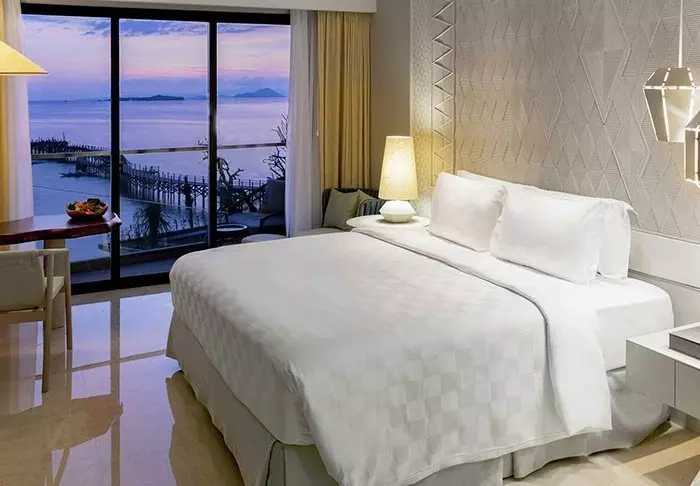 Resortens 205 rum är stilfullt inredda med möbler och modern dekor i ljusa färger, som perfekt kompletterar det naturliga ljuset från de stora fönstren. Varje rum är minst 43 kvadratmeter och har sin egen privata balkong, varifrån du kan njuta av den fantastiska havsutsikten och solnedgångens gyllene färger. Dessutom är samtliga rum utrustade med aircondition, wifi, LED-tv, walk-in-closet, minibar samt kaffe- och tefaciliteter. På badrummet finns det hårtork, separat dusch och badkar.