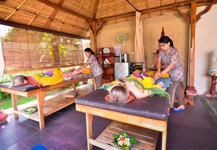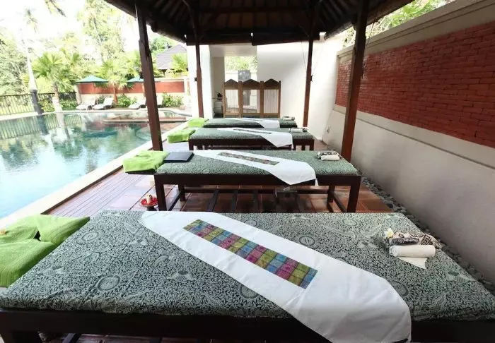Om du vill skämma bort dig själv lite extra kan du köpa till traditionella balinesiska massagebehandlingar på resortens egen spaavdelning.