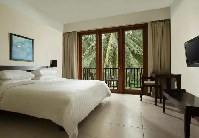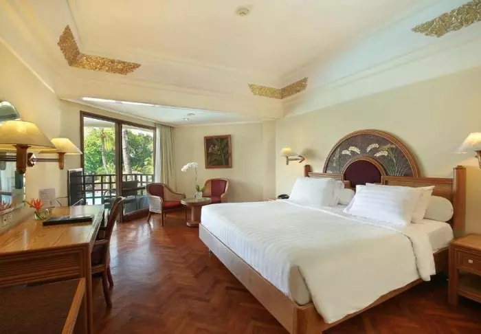 Maya Sanur har 103 ljusa och välinredda rum på minst 57 m2. Alla rum har wifi, aircondition, minibar, te- och kaffefaciliteter, värdeskåp, tv och telefon. De är dessutom utrustade med skrivbord och sittområde. Badrummet har både dusch och badkar samt toalettartiklar, morgonrock och tofflor. Från din privata balkong har du utsikt över den frodiga trädgården och här kan du sitta och läsa en bok eller njuta av en kopp balinesiskt kaffe.