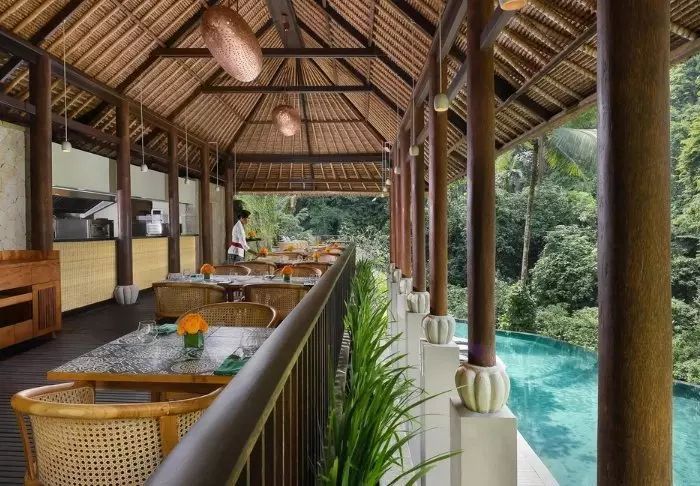 När du blir hungrig efter en upplevelserik dag kan du skämma bort dina smaklökar med en kulinarisk upplevelse från det lokala eller internationella köket i en av hotellets tre restauranger. Du kan också välja att njuta av en iskall drink i hotellbaren, Tree Bar, med utsikt över Ubuds frodiga natur.