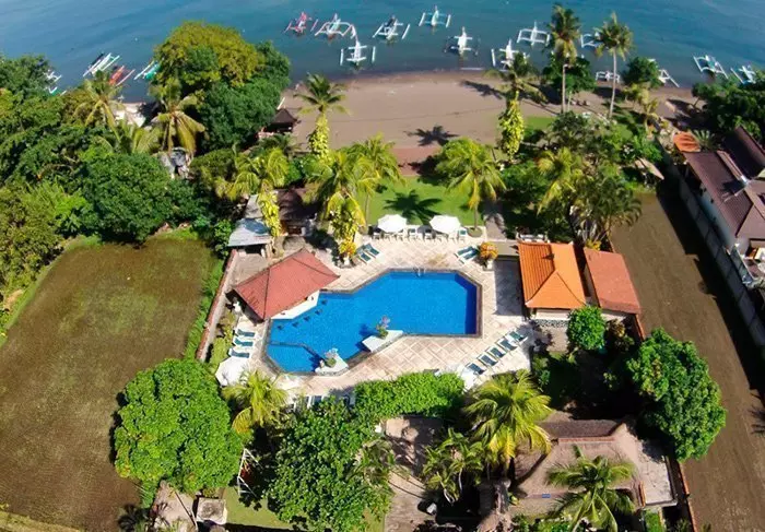 Lovina Resort ligger direkt på Lovinas mörka vulkaniska strand mellan bergskedjan Kalibukbuk och Balihavet. Här kan du dra nytta av den 200 meter långa privata stranden med solstolar och njuta av utsikten över det blå havet med alla de ikoniska fiskebåtarna.