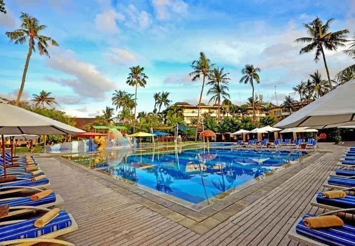 Hotellet erbjuder ett stort utbud av olika vattensportaktiviteter, men du kan såklart också välja att koppla av i en solstol i skuggan av palmerna. Puri Santrian gör dig inte heller besviken om du hellre vill simma i en pool – här finns två pooler där det finns plats för både barn och vuxna. Simma till en nedsänkt poolbar och få en cocktail i värmen – det är vad vi kallar semesterstämning!