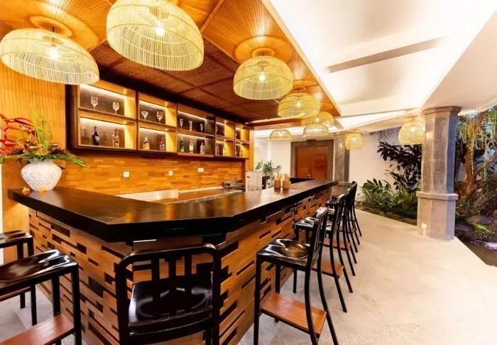 Baren, Tree Bar, är byggd i tre nivåer och ligger vid sidan om infinitypoolen med en härlig utsikt över Sanurs strand. Här kan du njuta av lättare måltider samt öl, vin och cocktails i den uppfriskande havsbrisen.