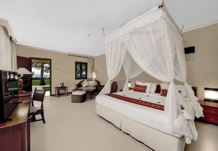 Du bor som standard i ett Superior-rum som är ljust och rymligt med trämöbler och stora fönster som vetter mot bergen eller hotellets gröna trädgård. Här bor du bekvämt med skrivbord, TV, wifi, garderob, myggnät samt te- och kaffefaciliteter. Badrummet har dusch och gratis toalettartiklar.