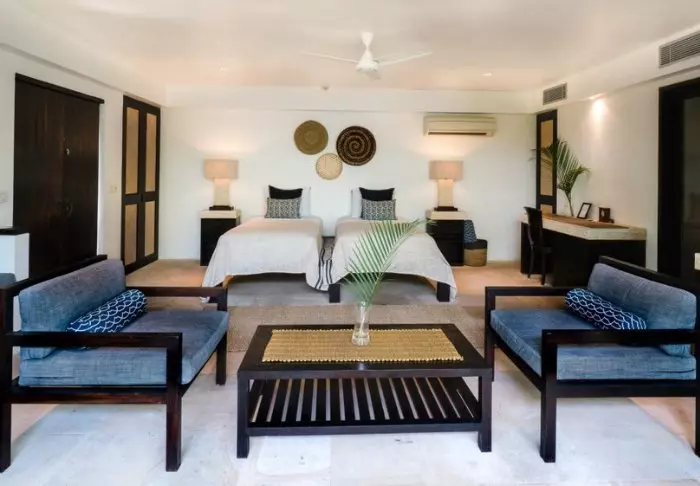 Rumskategorierna går från dubbelrum på 45 kvadratmeter, varav flera har privat liten pool, till villor med tre rum på 300 kvadratmeter. Samtliga rum är utrustade med aircondition och takfläkt, myggnät över sängen, tv, telefon, internet samt minibar, kaffe- och tefaciliteter, strykjärn och strykbräda, badrock och hårtork. Dessutom finns utomhusbad och dusch.