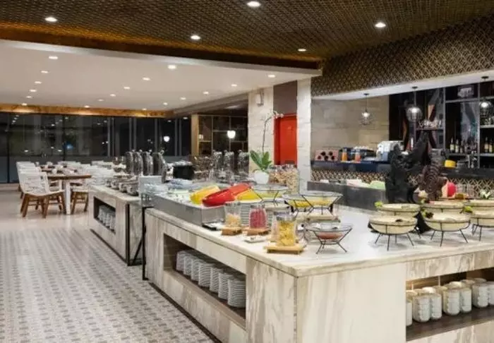 När hungern gör sig påmind erbjuder hotellets restaurang ett urval av lokala och internationella rätter som kan avnjutas med panoramautsikt över stranden.