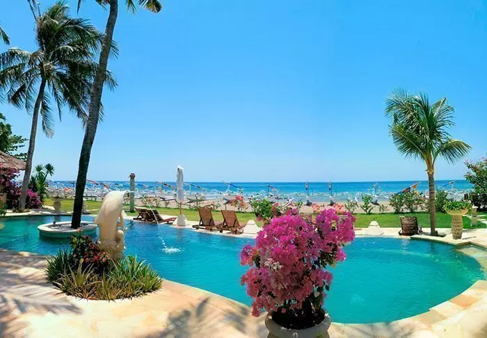 Den har ett enastående läge direkt vid Sanurs fina sandstrand, som bjuder in till solbad och simturer. Om du är tidigt uppe kan du se solen stiga upp över de traditionella fiskebåtarna i horisonten.