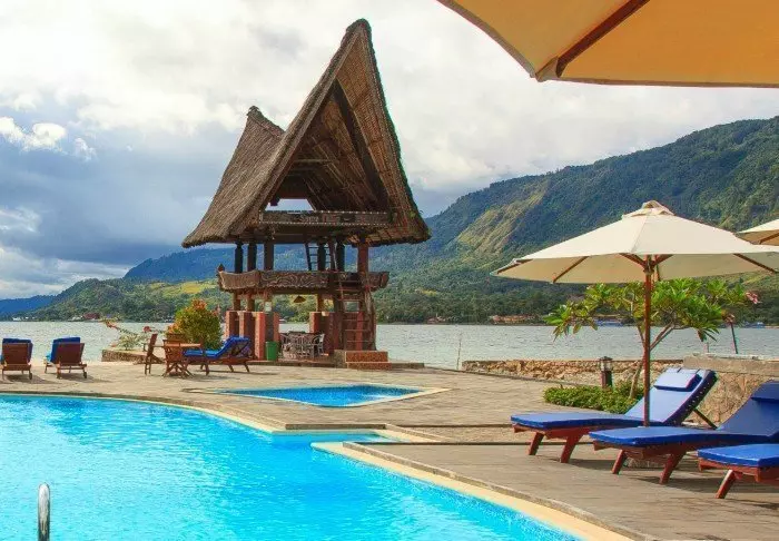 På ön Samosir mitt i kratersjön Toba ligger detta mysiga hotell som är omgivet av risfält och plantage. Hotellet är inrett i naturlig och traditionell stil och har en storslagen utsikt över sjön och bergen. Hotellets läge, den unika stilen och den prunkande tropiska trädgården ger en fantastisk och avslappnad atmosfär.