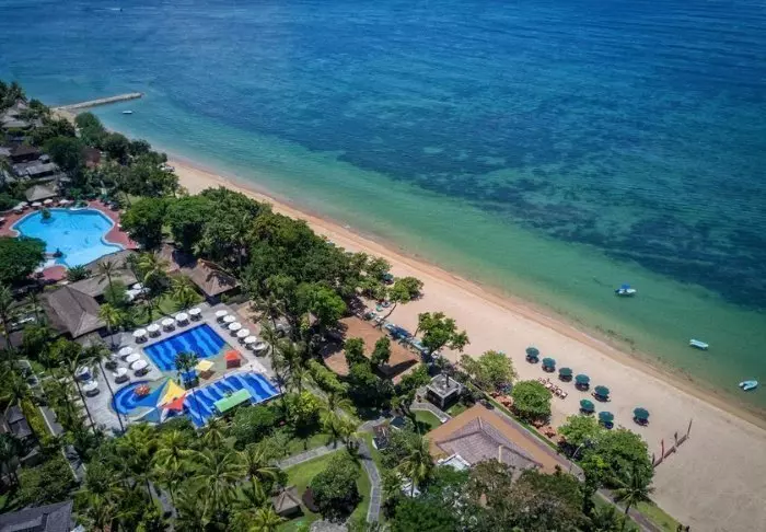 Mercure Bali Sanur Resort ligger precis vid en av Sanurs allra bästa stränder – en lugn och bred sandstrand med grunt vatten och skön skugga från palmer. Resorten sträcker sig över fem hektar tropisk trädgård med vajande palmer och slingrande små stigar som leder mellan balinesiska byggnader med traditionella alang alang-tak. Här bor du i rofyllda omgivningar men ändå nära Sanurs charmiga promenadstråk med caféer, butiker och restauranger.