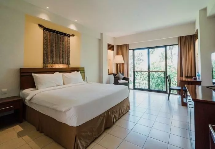 Bintang Flores har 101 rum, som alla är snyggt inredda i varma, ljusa färger som bidrar till att skapa ro. Samtliga rum är utrustade med aircondition, wifi, minibar och kylskåp, värdeskåp, tv, telefon och vattenkokare så att du har möjlighet att koka en kopp te eller kaffe. På badrummen finns det hårtork, gratis mineralvatten på flaska och gratis toalettartiklar. Rummen har dessutom fransk altan, där du kan njuta av utsikten över trädgården och havet, som gömmer sig bakom de stora träden.
